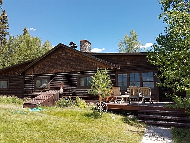 Dann noch ein paar enge Kehren nach unten und die ersten Pferde- bzw. Rinderkoppeln neben dem East Fork Wind River zeigten uns, dass die Ranch nicht mehr weit war. Kurz darauf sehen wir die ersten Cabins und erreichen über die Brücke am Fluss das Mainhouse.